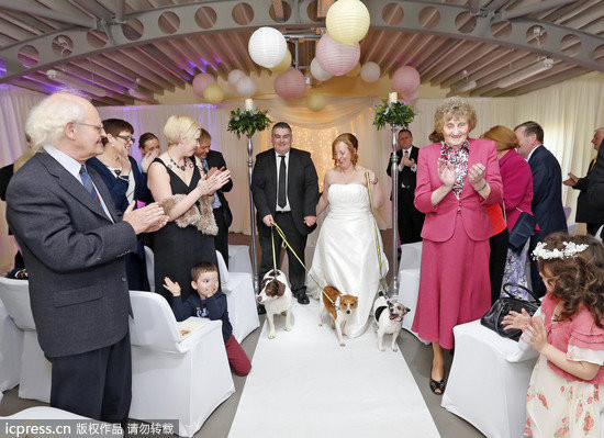更妙的是,婚禮在愛爾蘭的一家狗狗領養中心(Dogs Trust Rehoming Centre)舉行,儀式中,帕皮的位子是新娘的腿上,卡拉和雷尼與其他家人坐在前排。收容所負責人凱薩琳賓利(Kathrina Bentley)說,「這是愛爾蘭第一次有婚禮在狗狗領養中心舉行。」