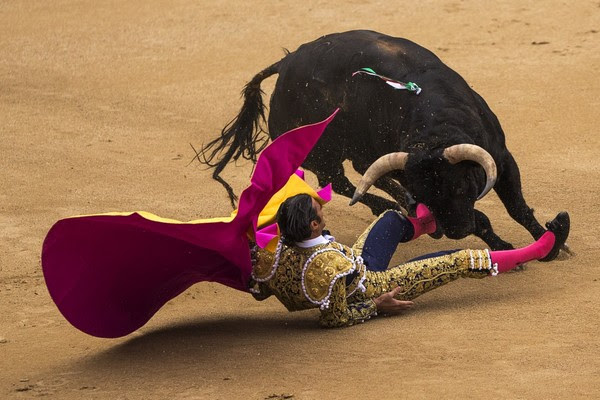 「鬥牛」是西班牙的傳統活動,由身穿鮮艷服飾的鬥牛士手持利器,與牛展開激烈對決。以往多半是由人類獲勝,但20日的競技中,牛卻是大獲全勝,勇猛撂倒3名鬥牛士。